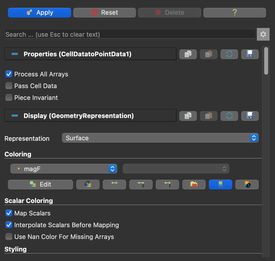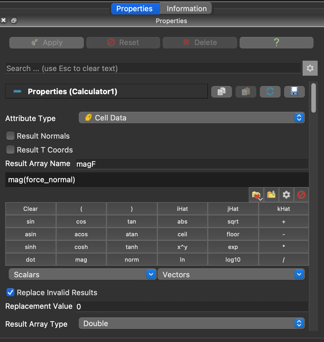 다음으로 Calculator 필터를 사용하여 force_normal의 합력을 계산한다. 계산 결과는 magF라는 Cell Data로 저장된다.