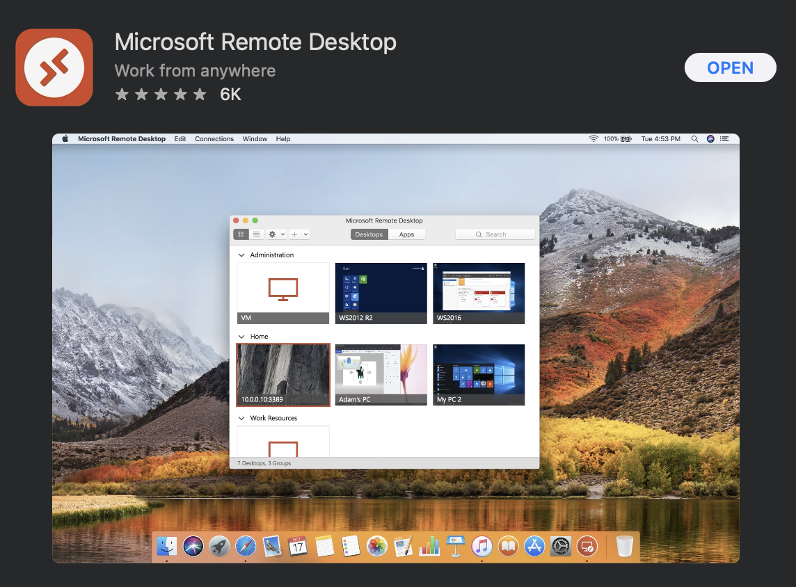 MacOS측에서 RDP에 접속하기 위해서는, App Store에서 Microsoft Remote Desktop App.을 사용하면 된다.